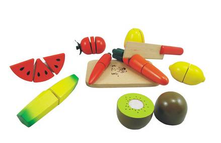 1.听觉描述。把要切切的水果、蔬菜等食物出示给孩子。
